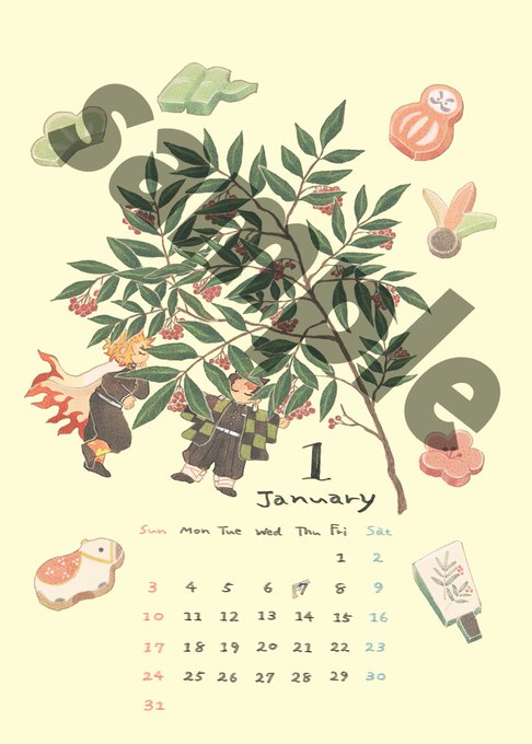 無事に脱稿したので1月10日のインテで頒布予定の卓上カレンダーのサンプルです!季節の草花を楽しむ2人です💐