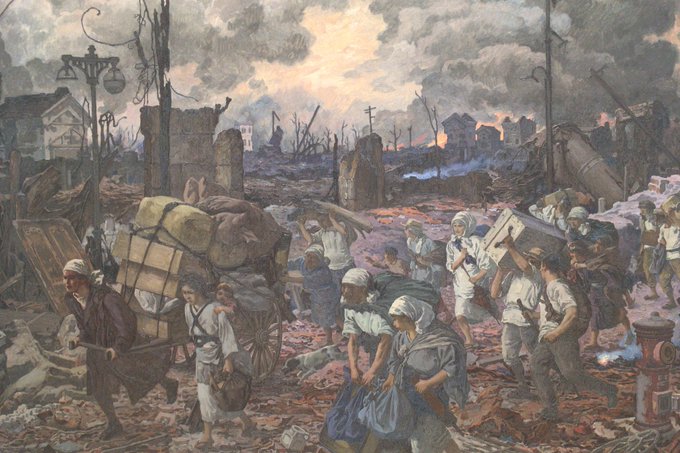 鹿子木孟郎「大正12年9月1日」。この人の代表作?手堅い技法がテーマと合ってるな…と。