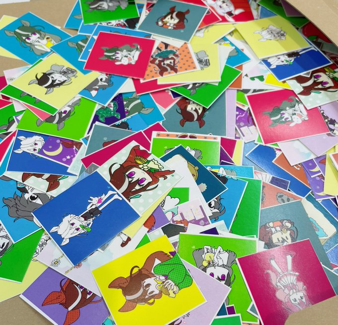 本・無配・シールの絵柄みほんよ‼️ 無配マンガはフォロワーの@Ideyoshi さんが考えてくれたかわいいお話よ〜‼️ シールは全36種類からランダムで入ってるわよ〜‼️セルフカットだからあんまりキレイじゃないわよ〜ごめんね〜😭貼る時にちょっとキレイに切ってね〜‼️