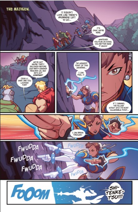 When Chun-Li learns The killing intent from her Master Gen, & becomes female Ken from fist of the North Star, Plus going toe to toe with some darkstalkers & even say in this I can destroy the weak point of the universe, yep pretty broken