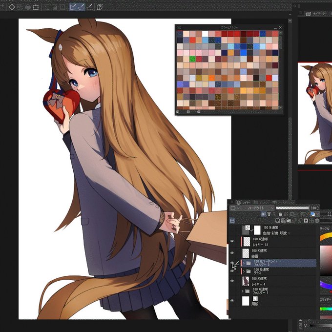 新しい塗り方も慣れてきました。 陰影レイヤーをオンオフして質感の違いを見て楽しんでる