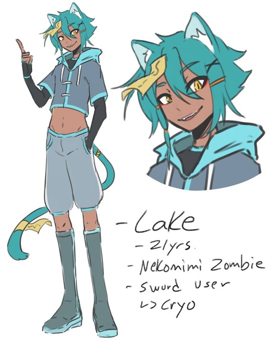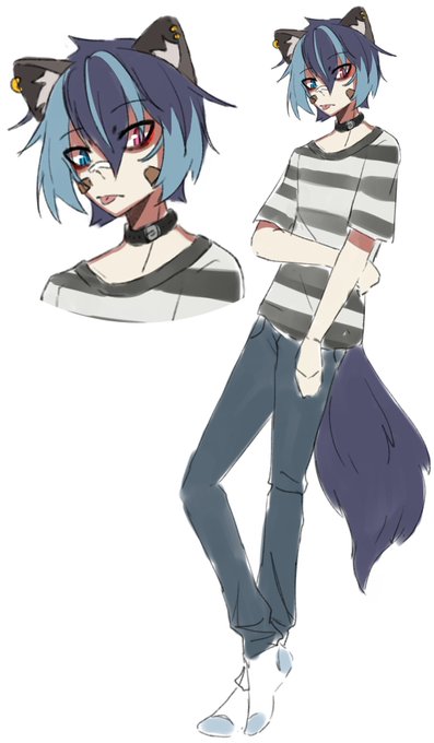 FIRST UP MY MAIN SON CUSTARD!!! Made him with a bunch of friends and there's lots of lore but basically he works in a cat cafe in a kemonomimi world!! There's domestic and feral kemonomimis with ferals being seen as dangerous by society haha guess which type he is <3