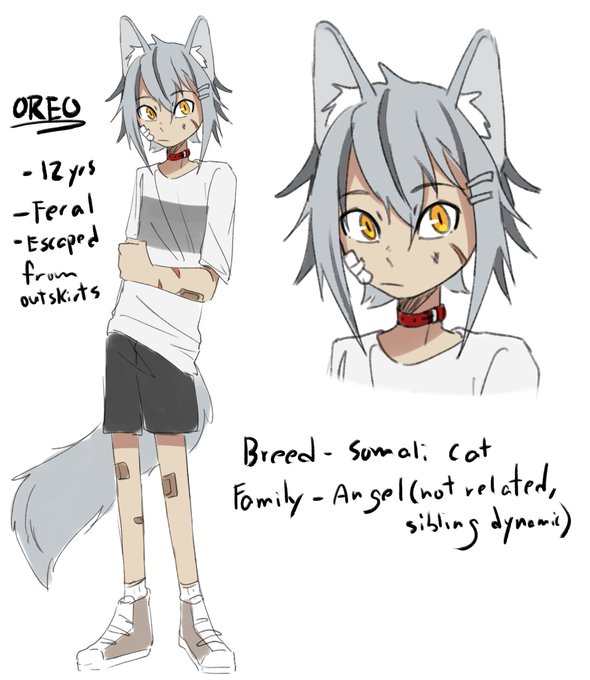 Ok NEXT SON is oreo and is part of the same world as custard and is also a lil feral boy who looks up to custard and has no family so custard is big bro 🥺
