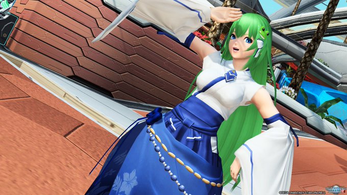 #再現キャラの隣に元ネタ #東方 #PSO2 #東風谷早苗 早苗さんを更新しました。 キャラクリも常識に囚われてはいけないんですね。