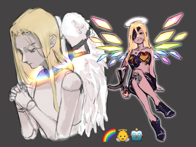 #絵文字3つもらってキャラデザする ムズイwww🤖凄くムズイけど🌈と結びつけてゲーミング👼にしたかった
