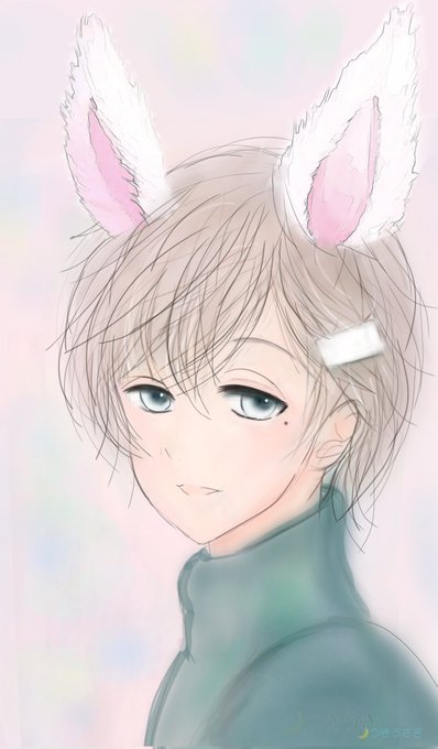 おはようさぎ …なんで急にこの絵を修正してたかっていうと、推しの朝の挨拶ツイ見たから描きたくなったんよね、これを(*´ー`*) #かな絵