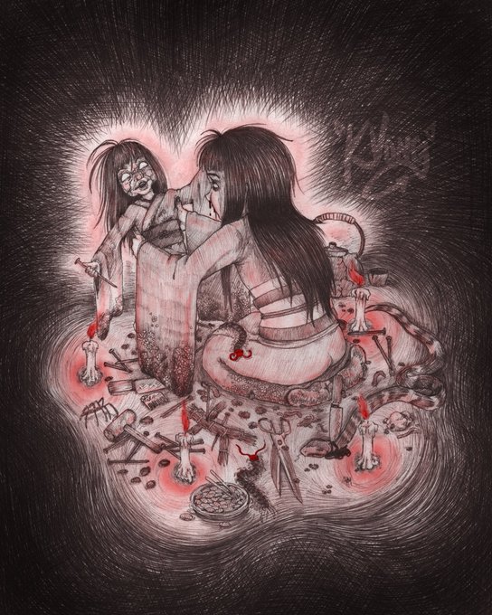 Yo! 😈 #PortfolioDay My name is Kyla, or KVong, and I am a horror/surreal artist based in Nashville. I love Japanese culture and draw a lot of horror themed lore.✌🏼