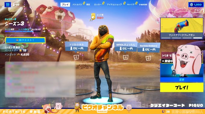 ピグオさん(@PiguoChannel )カスタムマッチありがとうございました!配信開始したら綺麗にいつメンが並んでたの面白かったw