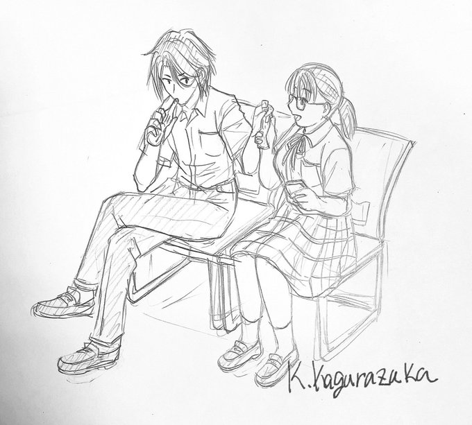 暑い季節なのでパピコをシェアする良平と美咲落書き