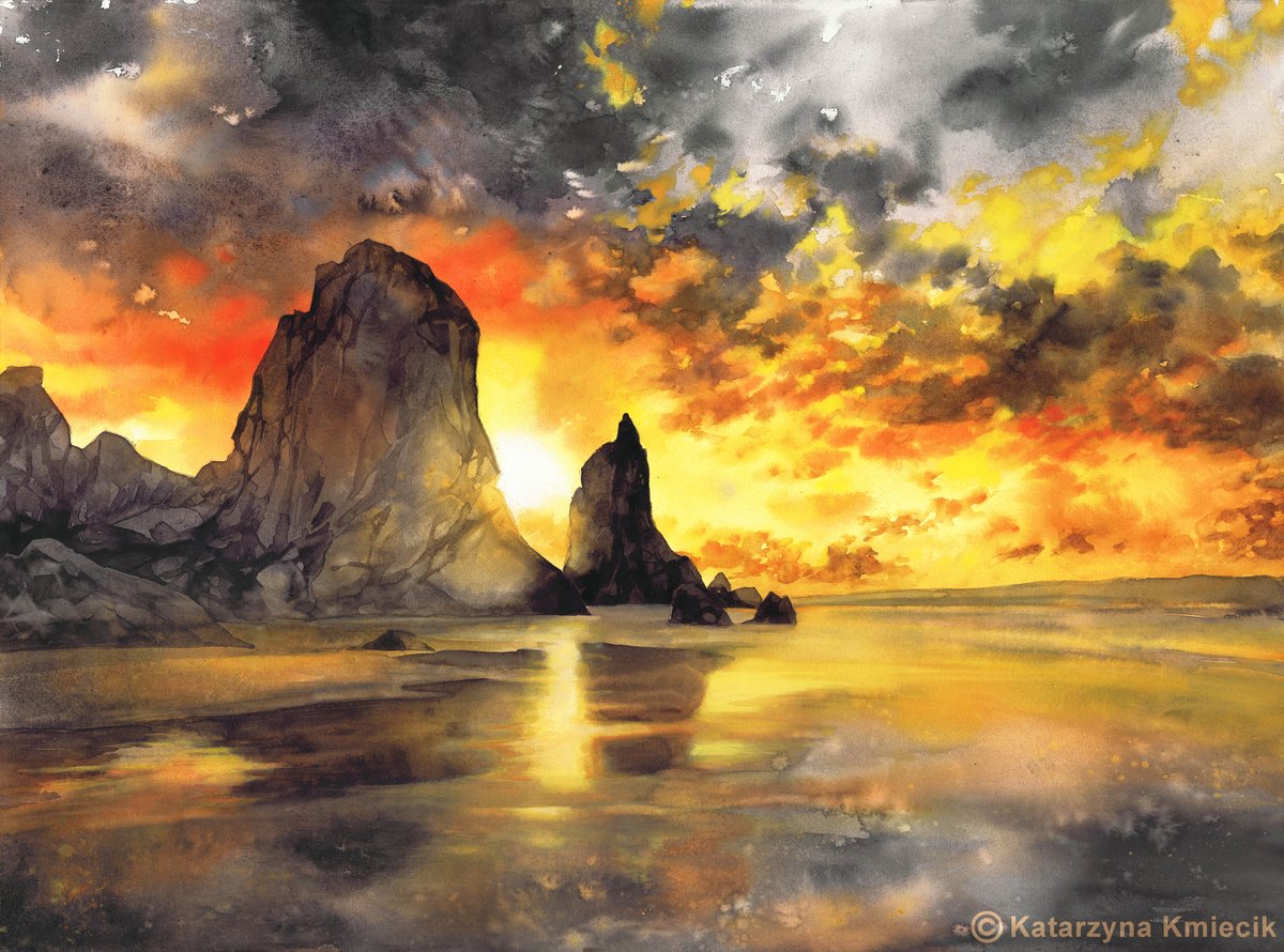 Fiery #sky reflected on the wet surface of the beach sand. I've made this #watercolor painting in December 2018 for the IWS Exhibition in Vietnam (Ho Chi Minh, 20-30 April 2019).