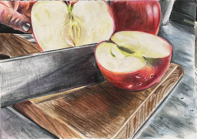 色鉛筆画コンテストに出したりんごの絵です!