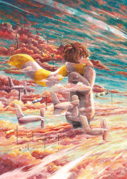 寒くなってきたので冬の空気感のある絵をチョイス。”雲と架空の街の今日の景色” “ごちそうたんけんたい” を、アクリルガッシュ+色鉛筆などのアナログ画材で描いております💪🌨️💪ご覧いただけるだけでも嬉しいです…!
