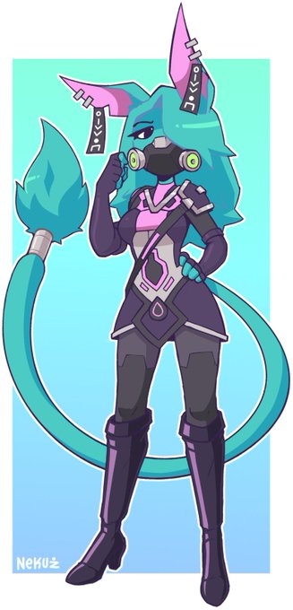 @jerbeartraveler @Neytiirix She also only has one eye! the other was damaged and removed when she was early on in her career (the one in its place is made of glass). She's the middle of 3 sisters (pink = younger bekkie, bulky = older sylver). Bekkie tried to resurrect both after they died protecting her.