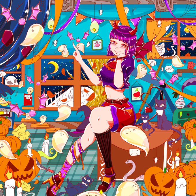 これから👉こうなったよん🎃🦇🕸😈正直あんまり納得してないけど塗り飽きたしハロウィン始まっちゃうから…ネ(言い訳)🎃👍👍👍👍 #ハロウィンイラスト #創作イラスト #絵柄が好みって人にフォローされたい #絵師さんと繋がりたい #絵描きさんフォロバ100