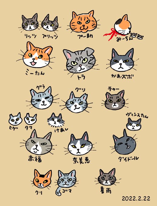 タマとヒゲが逆だった😅 美人ママもいた。 こうして並べてみると、出会った猫たち、みんな顔に性格でてたなぁ。 #猫の日 #ねこの日 #スーパーねこの日 #猫の日2022