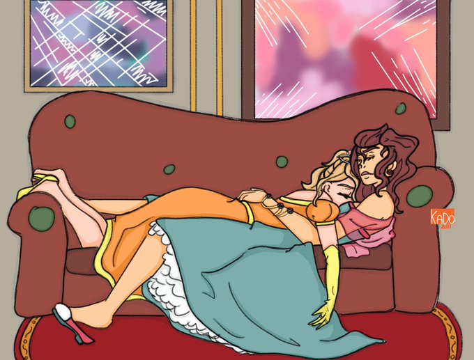 I’m in love with these two and couldn’t wait to make their wedding piece! #digitalart #LGBT #ocart #originalcharacter #princess 💜🌸💜🌸💜🌸