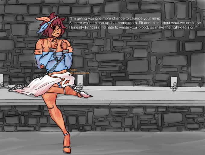 TW/ blood the princess chronicle thingy continues! Her answer from before did not please the man who conquered, threatened and killed her family. He hopes some time alone will make her give in. #ocart #princess #comic #digitalart #fantasy (second image is the recap?)