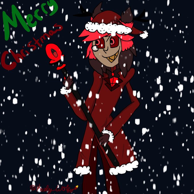 Happy Holidays and Merry Christmas everyone. Hunicast streams and the show always brightens my day. Drew some Christmas Angel Dust and Alaster fan art. First attempt of drawing Alastor. #HuniCast #HazbinHotelFanart #AngelDust #Alastor @EdBoscoVA @kovox @AshNicholsArt @VivziePop