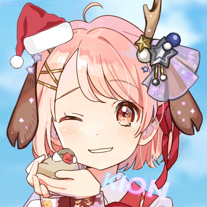 サンタ帽子はフリー素材で、髪飾りはビリビリのアイコン飾りです。