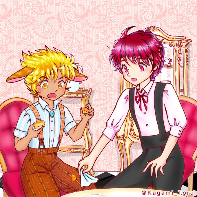 ツイステのレオナ風にしてみたアールグレイと、少年時代のアールグレイ・ダージリン・リゼです。