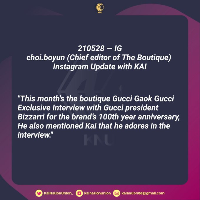 [IG] 210528 — choi.boyun (Chief editor of The Boutique) Instagram Update with KAI