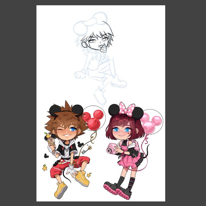 while it's being worked out, here's my progress on my Kingdom Hearts charms/stickers! Working on Riku now :) I'm doing Disneybound-type versions, although I think I stayed WAY too close to their original outfits! OOps