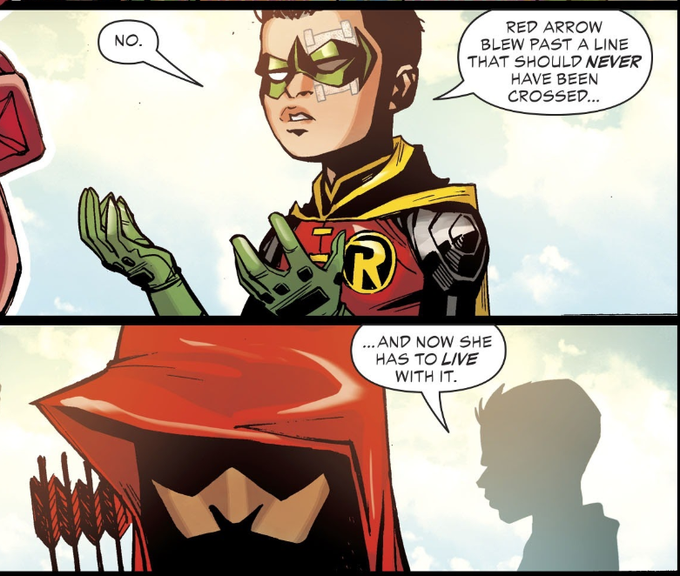 Let's go back to Teen Titans #30. Damian says EMI crossed the line when she killed Deathstroke. WHY IS HE SUDDENLY TURNING AROUND AND DOING THE SAME THING