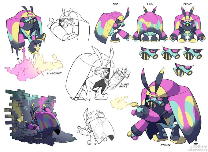 Revela un nuevo Pokémon estaba esperando al escarabajo grafitero no al mono que pinta árboles de colores pero bueno Quiero saber cuáles eran sus tipos