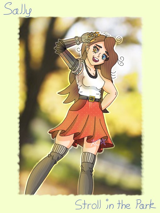 This is my character, Sally; a girl who's optimistic and carefree to a fault, and prone to making a mess of herself. She also sports a pair of cyber prosthetics.