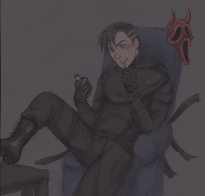 His addons make me so happy. Cheap dollarstore cologne is definitely my fave even though I dont use it, and chewed pen is just adorable #DannyJohnson #Deadbydaylight #deadbydaylightghostface #deadbydaylightfanart #dbd #dbdghostface #ghostfacefanart #jedohlson #dbdfanart