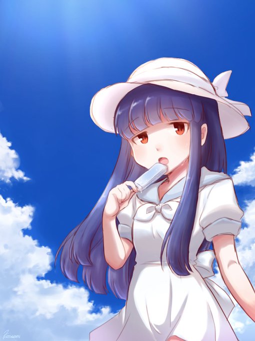 夏空とアイスと雪美ちゃん🍨 夏の雪美ちゃんシリーズ(?) 以前upした木陰と雪美ちゃんの続きみたいなものです。