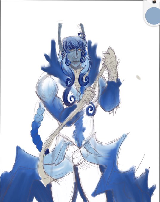 I don’t have a lot of #BlueArt but Icebound is full of blue/white characters (white & blue tiger race, Kamourians, and Rayce, Ice God). And there’s also Aurora (white angel) and Jason (blue elemental race, Jadorian). https://t.co/OGOapH5EEd