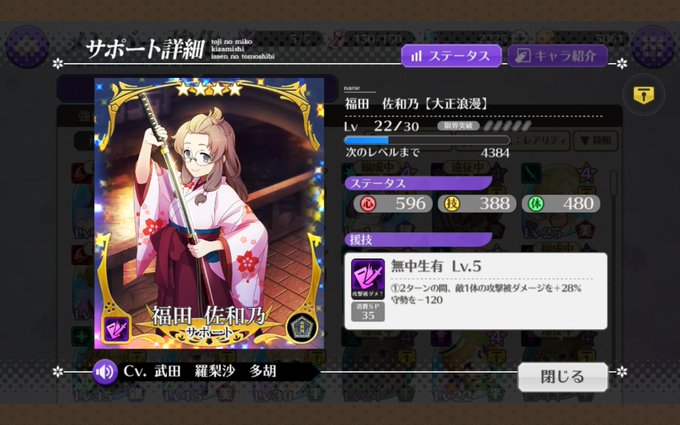 限界突破機能を搭載しており、成功すれば奥義をLv6にするルートが開放されます。