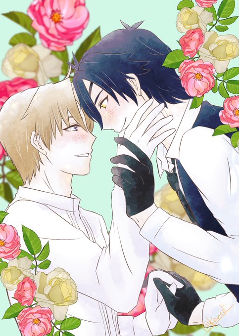#ひらいて赤ブー 今後も『蜜に浸かりて藤は咲く』の定期開催をどうぞよろしくお願いします💛💜 お顔の距離が近いふたりを再掲