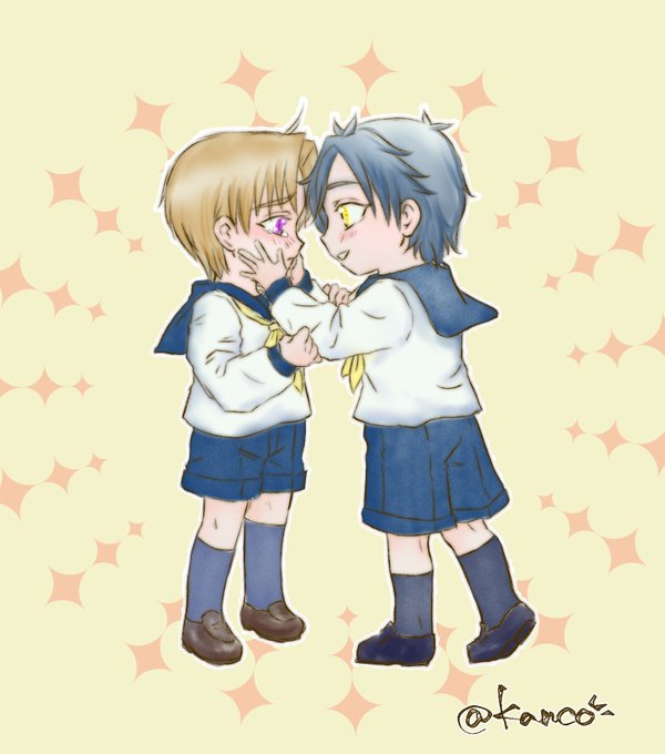 💛💜ショタ 色ちゃんと入れました🦊 あしたもまたあそぼうね。はせべくん。 うん。やくそく。みつただ。