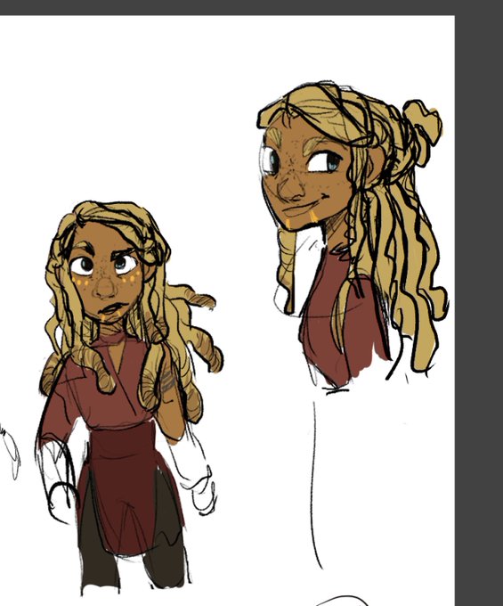 Dawn concept doodles!.. Dawn has dreads in the beginning of her story before she cut them later on after meeting Dusk and becoming a dragon rider 🍂