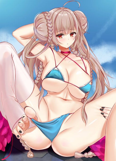 ほらぁ、足マッサージをくれてませんか #ザラ(アズールレーン) #巨乳 #足裏 #裸足 #足指 #水着 #アズールレーン #魅惑の谷間 https://t.co/kTe22VYGVj