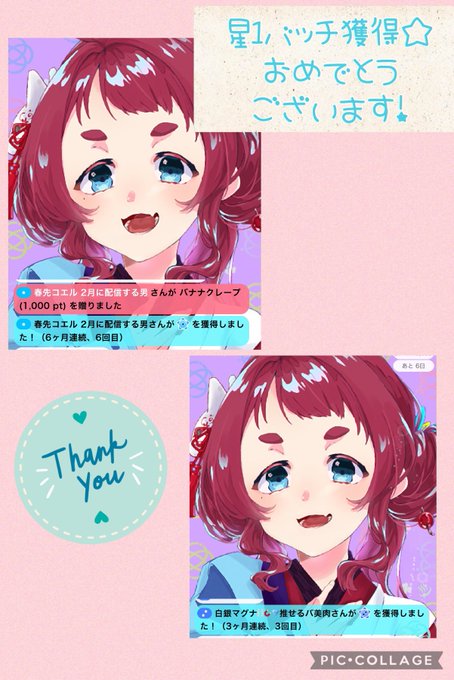 バッチ獲得おめでとうございます🎊 🏅コエルさん 6ヶ月目達成嬉しいっ👏✨ 🏅まぐちゃん 3ヶ月目!今後も続いてってくれると 嬉しいな☺️ ありがとうございます🙏✨