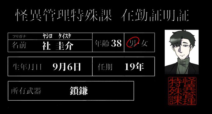 #かいあけ_管理課CS [怪異管理特殊課]田中 駿(タナカ シュン) やみぁ(@ymm_222 )宅