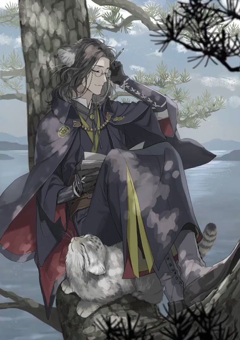 #刀剣男士幻想耳企画 でわたしの担当する南海先生のラフです😃マヌルネコチャンを添えて…。企画開始は2月21日夜からスタート!