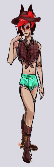 Yeeeeehaaaaaawww @AshNicholsArt @kovox @EdBoscoVA @VivziePop #CountryHell #Countryhelliscanon #HazbinHotel #HazbinHotelFanart #Alastor #Strawberrycowboy