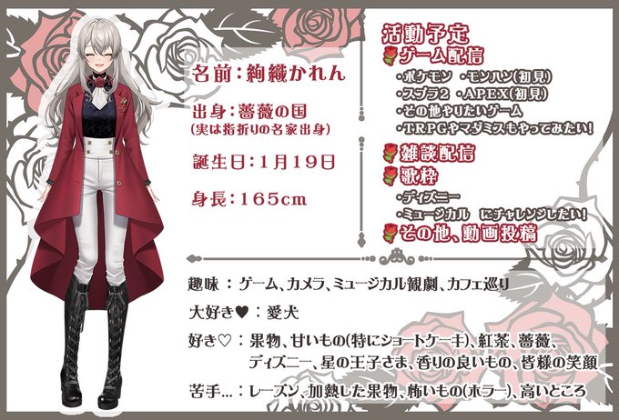 薔薇の国から参りました #新人Vtuber の絢織かれんと申します。以後、お見知りおきを❤