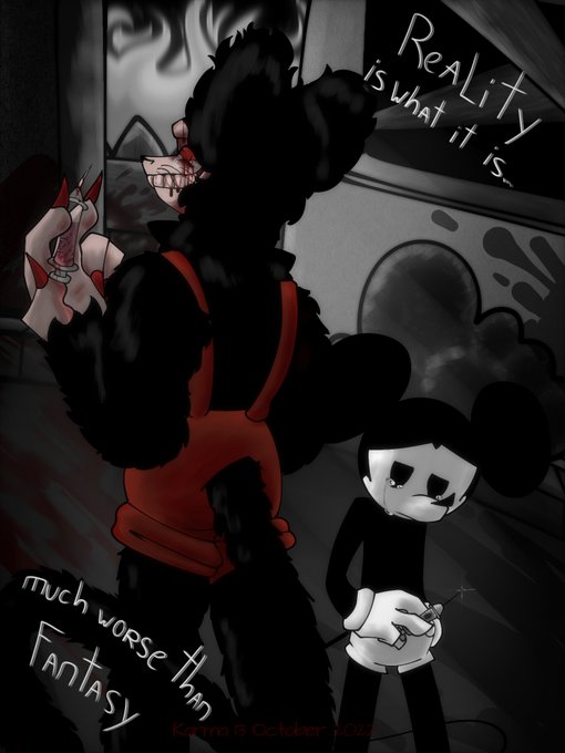 Я всё ещё живой!!! И в честь выхода обновления мода Wednesday's Infidelity,первого мода про микки, за которым я следил(пока не появился vs mouse) нарисил немного скетчей,и конечно же мем который был в моей голове на протяжении нескольких дней X)