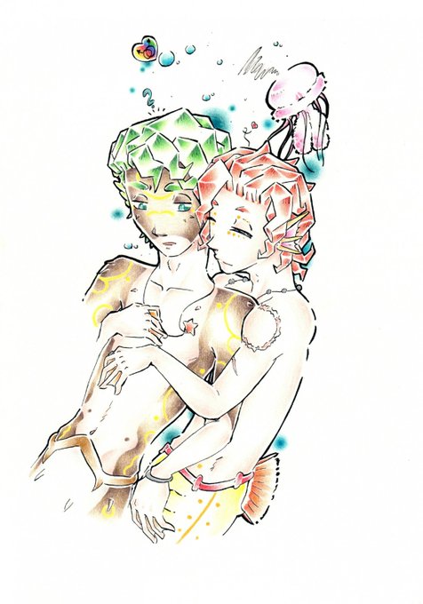 #artwork #coloration #coloredpencil #bundstift #manga #mermaid #boyslove