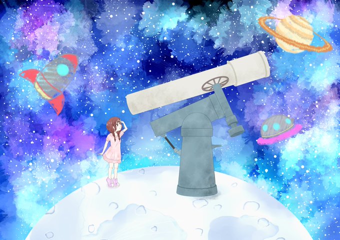 宇宙と月面の望遠鏡 #絵描きイラスト置き場