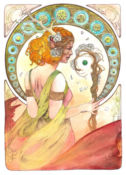 Thanks to @VaclavDivis 's kind soul this watercolour piece is now with the cast. Art noveau Keyleth based on Mucha. #CriticalRole