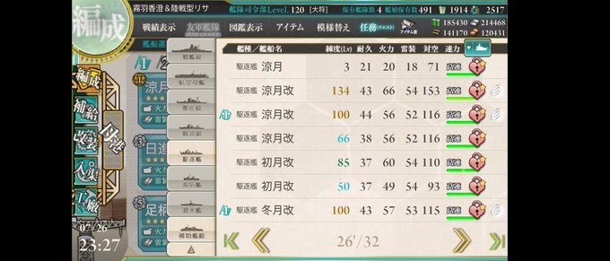 冬月ちゃんを見た瞬間からいつかやりたかった涼月ちゃん(2人目)と冬月ちゃんとダブルケッコンしました。