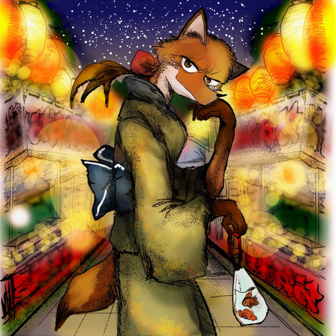 #オリキャラ #イラスト #落書き 👘 キツネさん 🏮 🦊Yukata Fox 🎇
