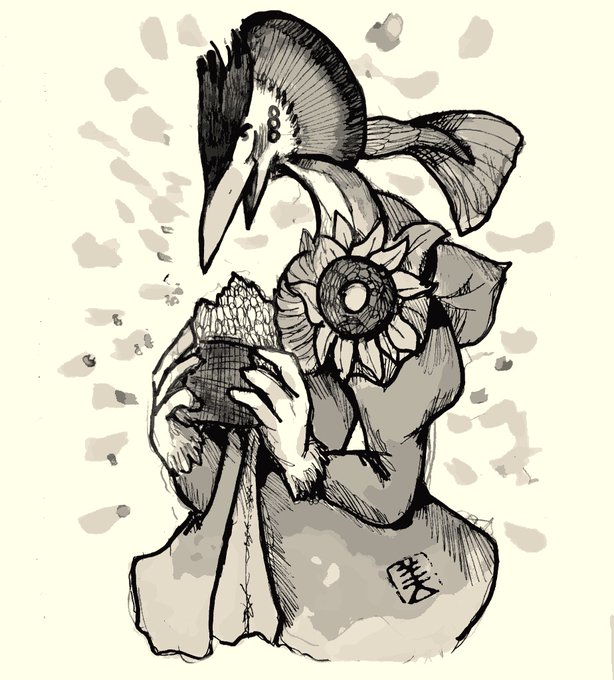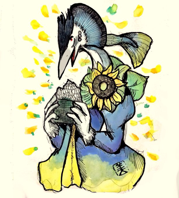 #オリキャラ #アナログ #落書き 🐟 ひまわりフィッシュカラー 🌻 🍙 カンムリカイツブリくん 🐠 🐟🌻🍙 🐠 Great Crested Grebe Bird boy 🍙 🐟 Sunflower fish color Grebe 🌻
