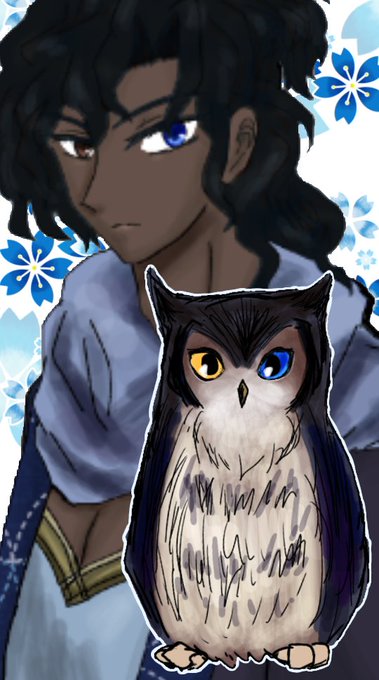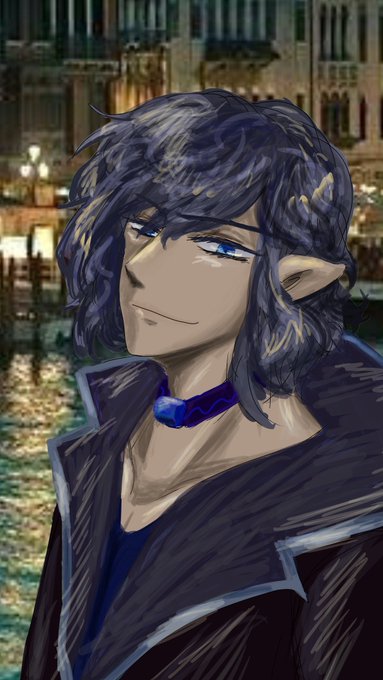 カティアと契約したことで焦げ茶っぽい黒髪に青いルネが流れて濡れ羽色に、瞳はより魔力を感じやすかった左目が真っ青に染まっただけです。二枚目が本来の彼の色合いの差分。